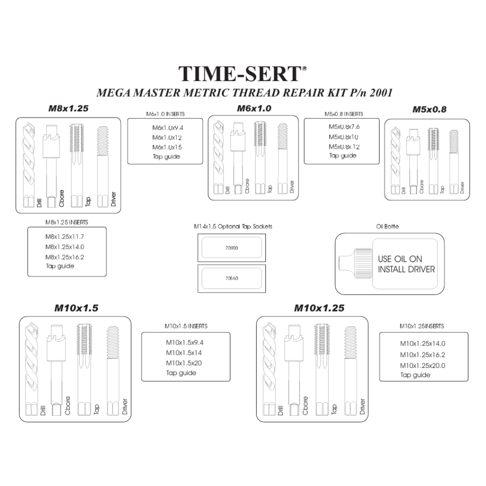 TIME-SERT® 2001 Mega Master Metric Thread Repair Kit M5–M18