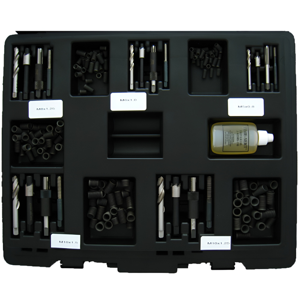 Experience unparalleled reliability and precision with the TIME-SERT® 2001 Mega Master Metric Thread Repair Kit M5–M18. This professional kit restores stripped or damaged threads in steel, stainless steel, aluminum, cast iron, titanium, and other metals. Moreover, it is ideal for automotive, industrial, and precision engineering applications, ensuring durable and high-accuracy repairs every time. For even greater flexibility, explore our full range of TIME-SERT® Inserts, offering additional sizes and options.