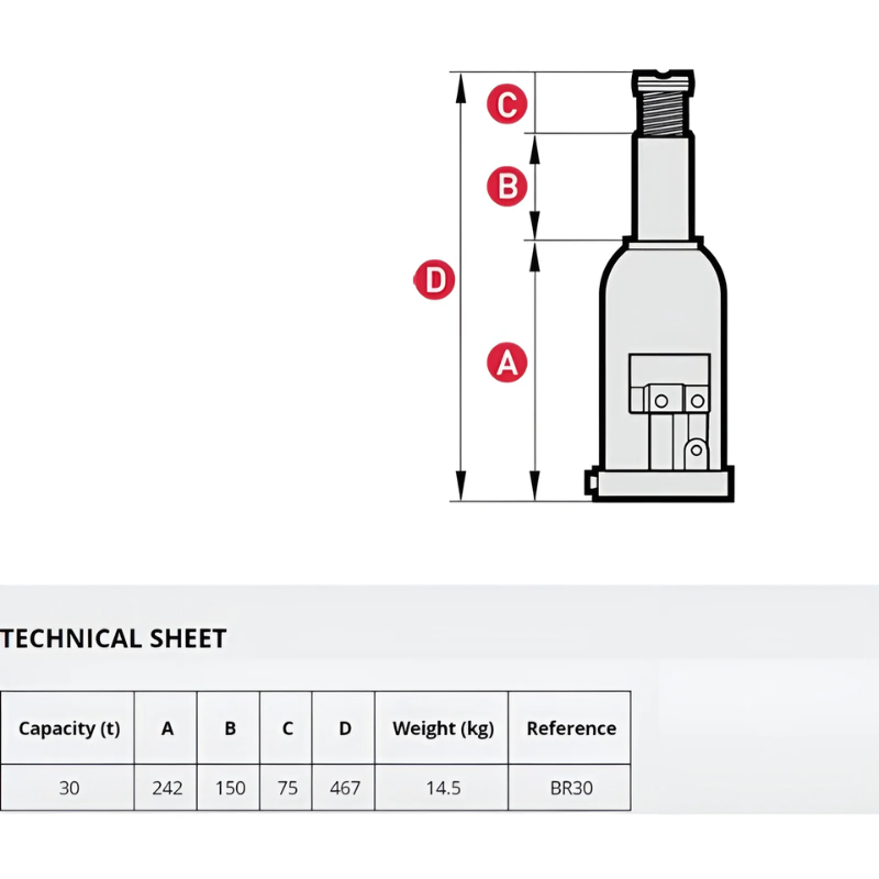 Position the MEGA 30 Ton Bottle Jack under the vehicle or equipment lifting point. Operate using hydraulic pressure, or manually with the supplied pump handle. Its lift height range of 242mm–467mm allows safe and efficient use for multiple lifting needs. Check out more lifting solutions for your workshop.